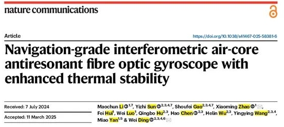 4月14日,中船集團旗下七〇七所和暨南大學等構建的深度合作研究團隊,在國際權威頂級期刊《Nature?Communications》發(fā)表了題為“Navigation-grade interferometric air-core anti-resonant fibre optic gyroscope with enhanced thermal stability”的最新研究成果,實現了空芯光纖陀螺領域的新突破。