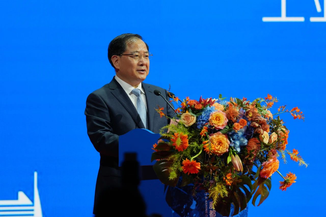 金壯龍在致辭中指出,??在以習近平同志為核心的黨中央堅強領導下,??歷經八年科研攻關、五年設計建造,“愛達·魔都號”成功研制交付,??這是推進新型工業化的重大成果,??是造船強國建設的重要里程碑,??探索走出一條以我為主、開放合作、協同創新、全球配套的郵輪產業發展路子,?為全面提升我國高技術船舶設計建造能力,??加快造船強國、制造強國建設奠定了堅實基礎。??郵輪產業是先進制造業和現代服務業深度融合的產業,??產業鏈長,帶動性強,??國際化程度高,??我們要牢記習近平總書記“??建造我們自己的郵輪”的殷切囑托,深入貫徹落實黨的二十大精神,??貫徹落實全國新型工業化推進大會精神,??發揮我國完備的產業體系和超大規模市場優勢,??一以貫之,持續奮斗,推動郵輪產業躋身世界一流水平。