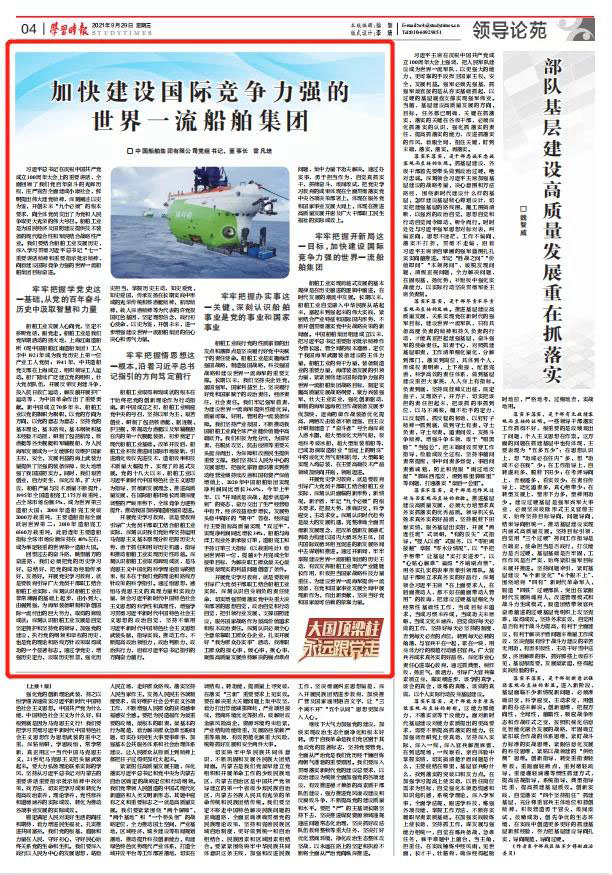 9月29日,《學(xué)習(xí)時(shí)報(bào)》刊發(fā)中國船舶集團(tuán)黨組書記、董事長雷凡培署名文章《加快建設(shè)國際競爭力強(qiáng)的世界一流船舶集團(tuán)》,現(xiàn)全文分享如下。