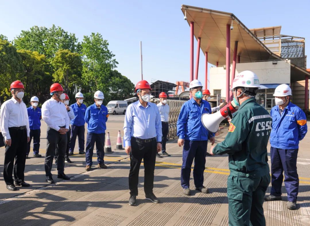 5月5日,中國(guó)船舶集團(tuán)有限公司黨組副書(shū)記、總經(jīng)理?xiàng)罱鸪傻郊瘓F(tuán)公司旗下上海外高橋造船有限公司調(diào)研疫情防控和復(fù)工復(fù)產(chǎn)工作。中國(guó)船舶集團(tuán)黨組成員、副總經(jīng)理孫偉參加調(diào)研。