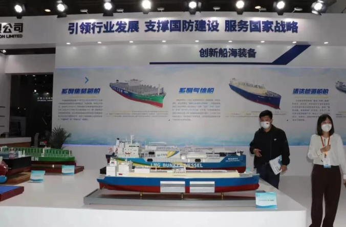 在創新船海裝備展區,中國船舶集團集中展示了清潔能源船舶、系列LNG船、系列集裝箱船、系列油船、系列散貨船、系列科考船、系列特種船和未來船舶八個板塊。