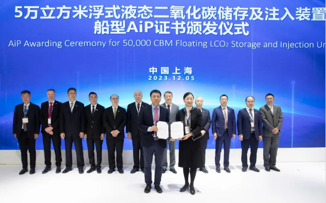 在展會(huì)現(xiàn)場(chǎng),辛國(guó)斌、溫剛等參觀了集團(tuán)公司展臺(tái),并共同見(jiàn)證了中國(guó)船舶集團(tuán)與法國(guó)GTT公司簽訂2023版諒解備忘錄(MOU)、大連造船海洋CCUS產(chǎn)業(yè)鏈產(chǎn)品頒證、5萬(wàn)立方米浮式液態(tài)二氧化碳儲(chǔ)存及注入裝置船型AIP證書(shū)頒發(fā)儀式、2萬(wàn)及1.2萬(wàn)立方米液態(tài)二氧化碳運(yùn)輸船船型AIP證書(shū)頒發(fā)儀式。