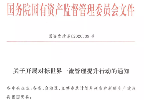 6月13日,國資委正式印發(fā)《關于開展對標世界一流管理提升行動的通知》(以下簡稱《通知》),對國有重點企業(yè)開展對標提升行動作出部署安排。