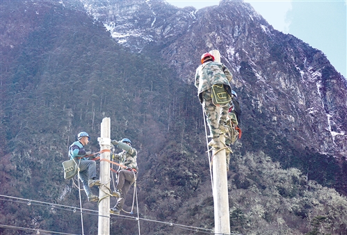 工人在玉麥鄉(xiāng)境內(nèi)施工。西藏自治區(qū)山南隆子縣玉麥鄉(xiāng)電力線路近日全線貫通,