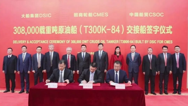 ????11月8日,大船集團為招商輪船建造的30萬噸超大型油船(VLCC)“凱福”號簽字交工。