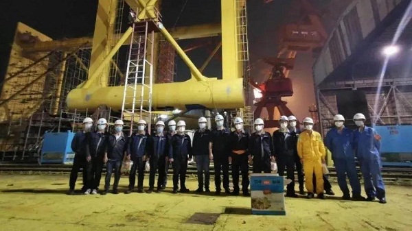 ????同一天,隨著最后一塊防沉平臺箱梁分段順利吊裝,黃埔文沖非船團(tuán)隊已經(jīng)連續(xù)奮戰(zhàn)十天十夜。至此,為保利長大公司建造的明陽華西單樁穩(wěn)樁平臺主體工程