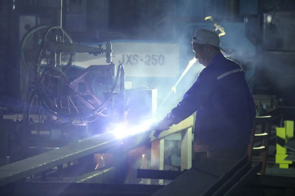 炙熱的切割火焰,照亮了生產廠房