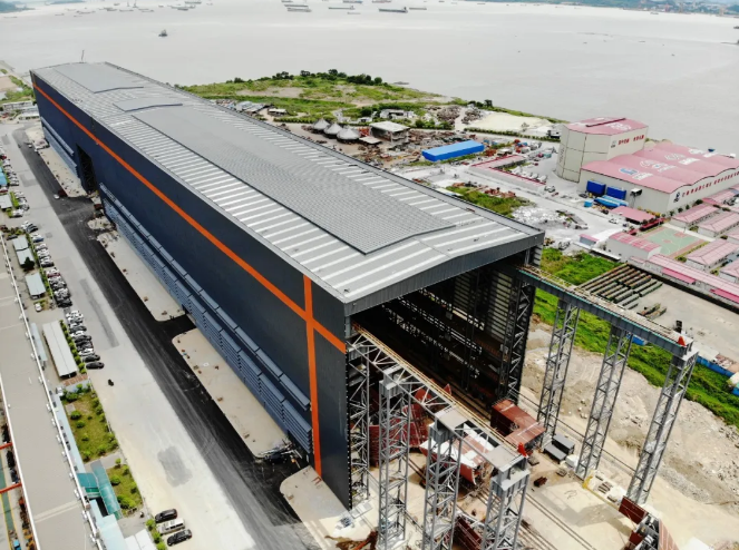 ????日前,中國船舶集團旗下黃埔文沖龍穴廠區室內總裝及分段總組車間工程正式完工移交。這是目前國內最高、跨度最大的單層室內總裝及分段總組車間。