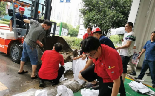 近期,位于湖北宜昌的中南裝備受到暴雨嚴重影響,圍墻傾倒、工房漏雨、雨水倒灌的現象均有發生。面對災情,中南裝備立即組織黨員群眾搶險自救,大家手持鐵鍬,裝沙袋、堵決口,迅速筑起一道道沙袋小壩,通過積極奮力搶險,最大限度地降低了損失。