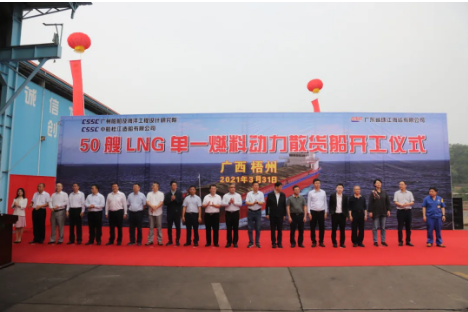 3月31日,中國船舶集團旗下廣州船院協同中船廣西所屬桂船公司,為珠江海運有限公司設計建造的液化天然氣(LNG)動力散貨船正式點火開工。