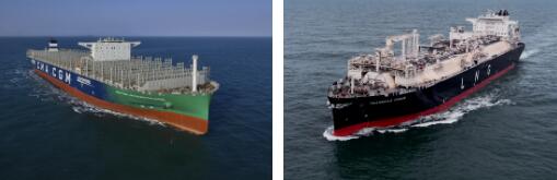滬東中華全年累計(jì)交船17艘,其中23000TEU雙燃料超大型集裝箱船3艘、174000立方米液化天然氣(LNG)運(yùn)輸船2艘、174000立方米大型浮式液化天然氣儲(chǔ)存及再氣化裝置(LNG-FSRU)2艘、優(yōu)化型13000噸重吊船4艘、18600立方米LNG加注船1艘、15000TEU超大型集裝箱船3艘,以及其他船舶2艘。