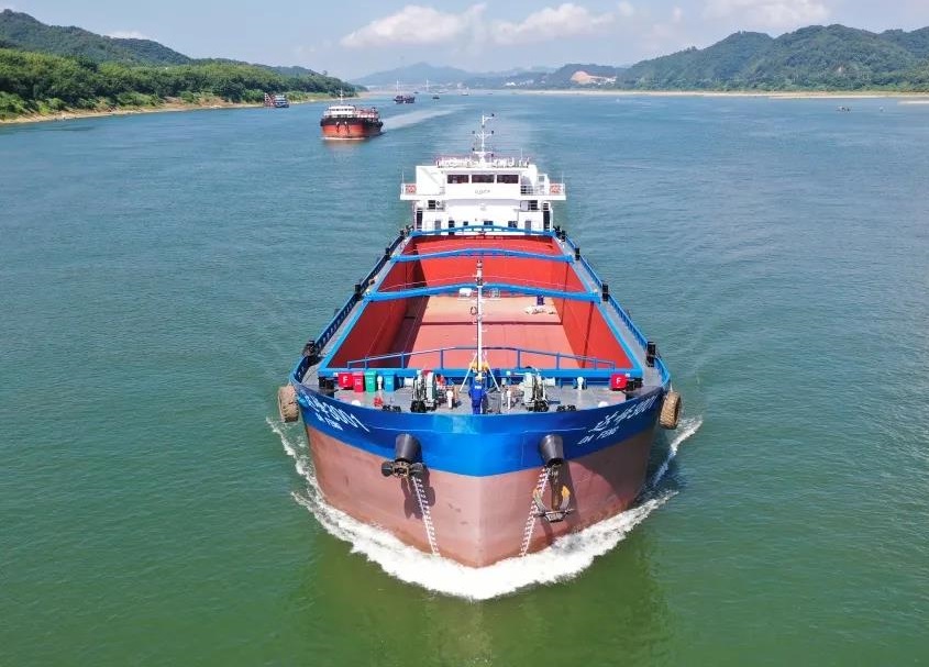 “綠色珠江”工程LNG單一燃料動力船舶兩型首制船——3000載重噸散貨船“達峰3001”號、2000載重噸散貨船“中和2001”號,由中國船舶集團旗下廣州船院設計、中船廣西建造,于今年11月2日交付并投入運營。