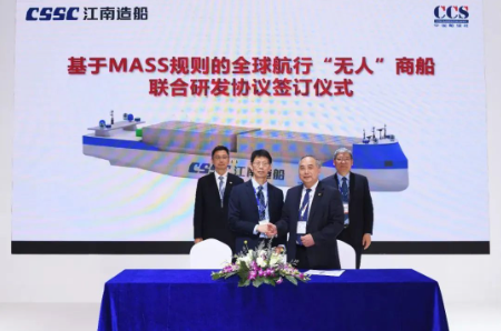 此外,與中國(guó)船級(jí)社簽訂面向MASS(海上自主水面船舶)規(guī)則應(yīng)用的全球航行“無人”商船聯(lián)合研發(fā)協(xié)議。