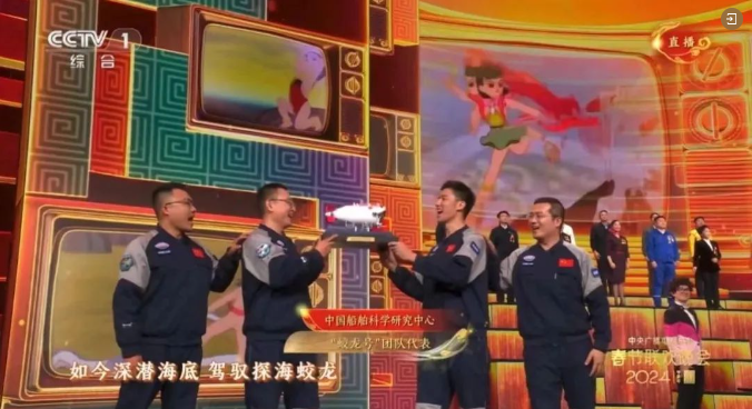 在2024年的春晚舞臺上 ,《看動畫片的我們長大了》這個節(jié)目引起觀眾廣泛共鳴。中國船舶集團七〇二所“蛟龍”號載人潛水器研制團隊代表參與其中,給人留下了十分深刻的印象。看《哪吒鬧海》的我們,如今深潛海底、駕馭探海蛟龍。