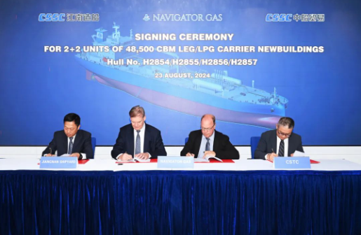 8月23日,江南造船與全球航運巨頭Navigator公司正式簽訂了2+2艘中型液化乙烷運輸船(MEC)的建造合同。