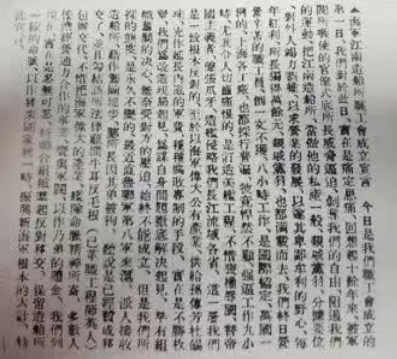 《海軍江南造船所職工會成立宣言》