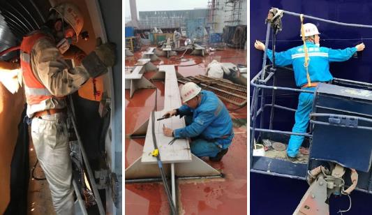 ????疫情期間,為了追趕出塢節點,江南造船建造團隊積極與外籍船東監造組成員和服務商溝通,嘗試自主施工并細化監督措施