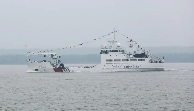 由武船集團船舶公司承建的廣東海事局2000噸級大型航標船“海巡173”號順利離廠,準備后續交付工作。“海巡173”號總長73.34米,型寬14米,型深6.2米,設計吃水4米,排水量約為2300噸;采用雙機、雙軸、雙舵、雙槳推進,并配置先進的高速柴油機、彈性聯軸節、可反轉減速齒輪箱、電子控制及監測系統。
