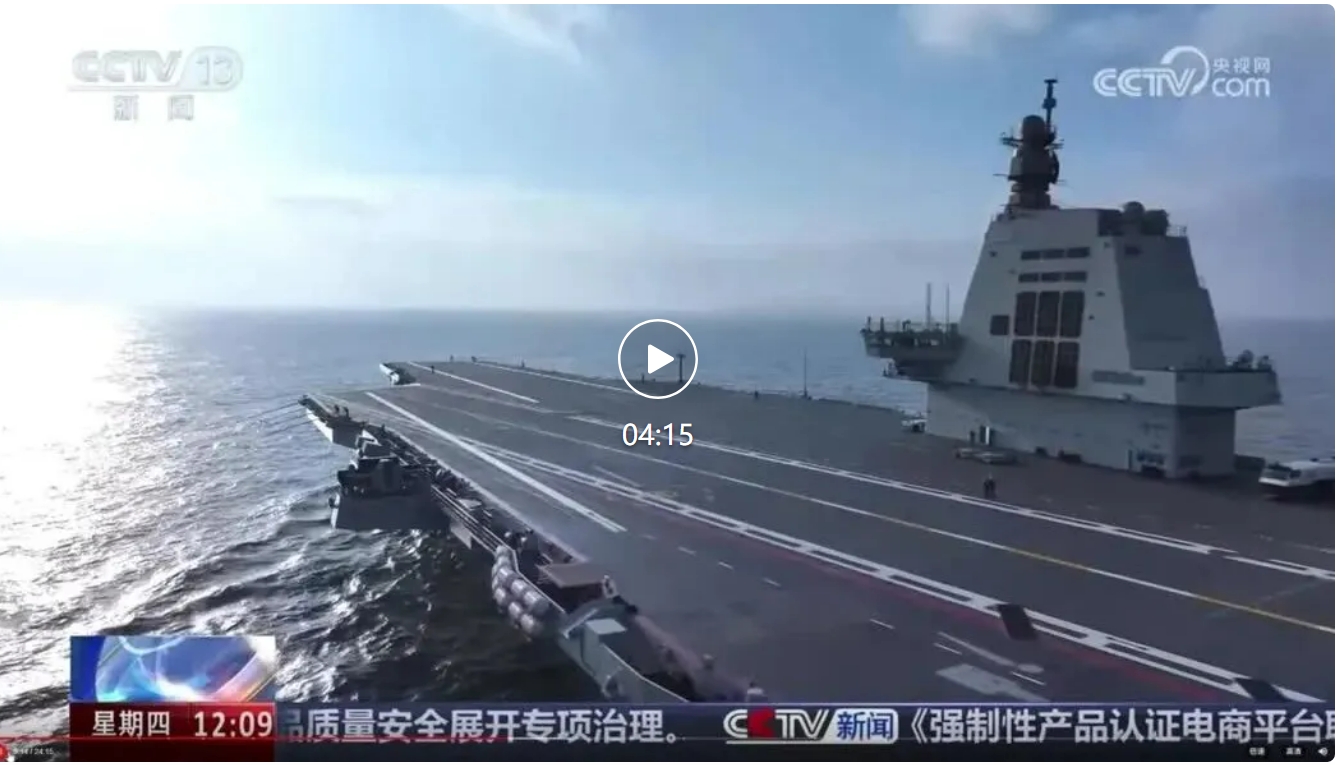 12月25日,中央電視臺《新聞30分》欄目報道福建艦入列后首次海上實兵訓練任務情況。