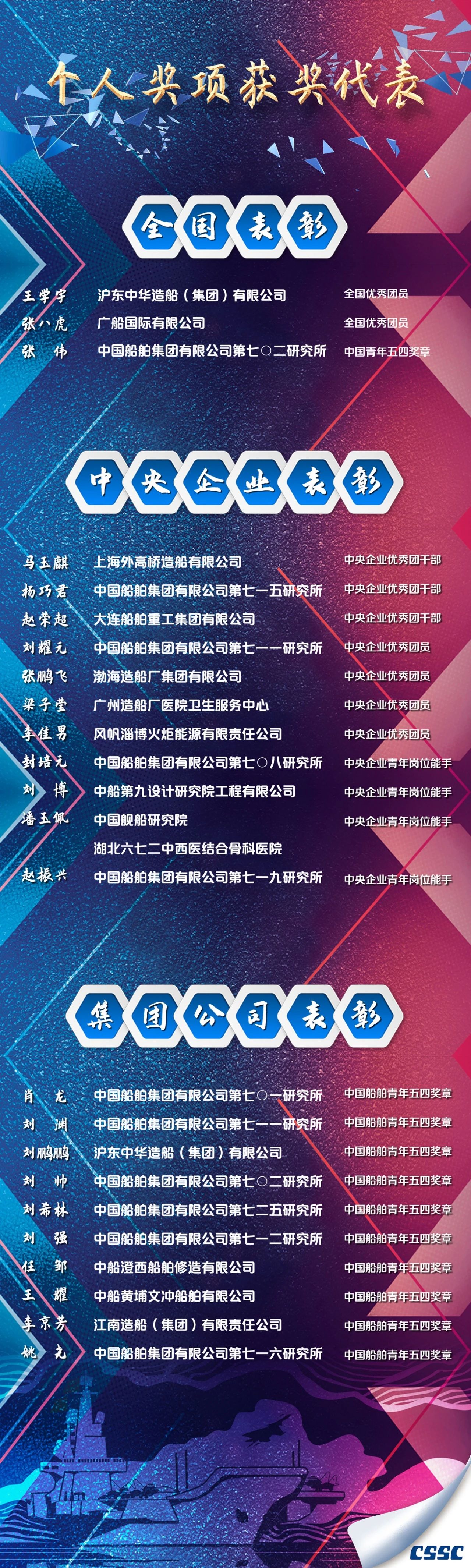 有的在生產一線不畏艱難、埋頭苦干,有的在服務集團發展的最基層不計得失、任勞任怨。他們把個人理想融入世界一流船舶集團的偉大事業中,書寫著新時代的青春答卷,彰顯著新時代青年的責任與擔當,為船舶青年作出了榜樣,樹立了標桿。