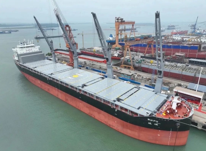 日前,中船集團(tuán)上船院研發(fā)設(shè)計(jì)62000噸重吊多用途船OCTOPUS 62 “明融”號、“瑞福”號命名交付。